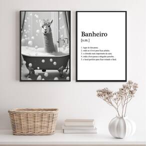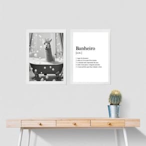 Kit 2 quadros divertidos banheiro - lhama 45x34cm Moldura: madeira preta Informações do produto tire todas as suas dúvidas no descritivo abaixo: decoração para quarto, sala, cozinha, escritório, área gourmet e muito mais. Chega de paredes vazias. Medidas - cada peça tem 45x34cm a3 . Material do papel - papel fotográfico brilhante de altíssima resolução acabamento - todos os quadros são acompanhados de uma película de acetato para proteção da imagem. - os quadros são embalados de forma segura com plástico bolha com camada dupla de acordo com o tamanho dos quadros. Garantia - garantia de 3 meses. Meu quadro chegou. Como posso fixá-lo Você precisa apenas de um martelo e um prego, pois os quadros já vão acompanhados de penduradores. Esta é a forma mais indicada. Caso prefira, você pode utilizar uma fita dupla face neste caso, sugerimos de alta qualidade para evitar que descole e seu quadro caia . Como posso limpar meu quadro A limpeza é feita como um móvel comum da sua casa. Apenas um pano seco ou espanador são suficientes para tal