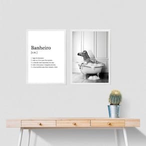 Kit 2 quadros divertidos banheiro - zebra 45x34cm - com vidro