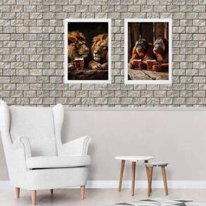 Kit 2 Quadros Divertidos Bar - Animais 24X18Cm - Com Vidro