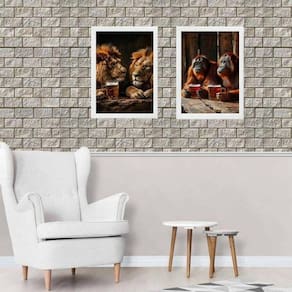 Kit 2 quadros divertidos para bar - animais 33x24cm - com vidro Moldura: madeira preta Informações do produto tire todas as suas dúvidas no descritivo abaixo: decoração para quarto, sala, cozinha, escritório, área gourmet e muito mais. Chega de paredes vazias medidas - cada peça tem 33x24cm a4 . Material do papel - papel fotográfico brilhante de altíssima resolução acabamento - todos os quadros são acompanhados de vidro para proteção da imagem. - moldura em madeira maciça na cor preta ou branca conforme produto escolhido e pendurador . - os quadros são embalados de forma segura com plástico bolha com camada dupla de acordo com o tamanho dos quadros. Garantia - garantia de 3 meses. Meu quadro chegou. Como posso fixá-lo Você precisa apenas de um martelo e um prego, pois os quadros já vão acompanhados de penduradores. Esta é a forma mais indicada. Como posso limpar meu quadro A limpeza é feita como um móvel comum da sua casa. Apenas um pano seco ou espanador são suficientes para tal