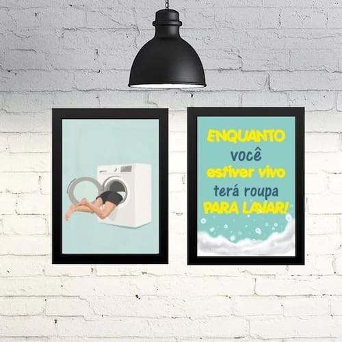 Kit 2 quadros divertidos para lavanderia 33x24cm Moldura: madeira preta Informações do produto tire todas as suas dúvidas no descritivo abaixo: decoração para quarto, sala, cozinha, escritório, área gourmet e muito mais. Chega de paredes vazias medidas - cada peça tem 33x24cm a4 . Material do papel - papel fotográfico brilhante de altíssima resolução acabamento - todos os quadros são acompanhados de uma película de acetato para proteção da imagem. - os quadros são embalados de forma segura com plástico bolha com camada dupla de acordo com o tamanho dos quadros. Garantia - garantia de 3 meses. Meu quadro chegou. Como posso fixá-lo Você precisa apenas de um martelo e um prego, pois os quadros já vão acompanhados de penduradores. Esta é a forma mais indicada. Caso prefira, você pode utilizar uma fita dupla face neste caso, sugerimos de alta qualidade para evitar que descole e seu quadro caia . Como posso limpar meu quadro A limpeza é feita como um móvel comum da sua casa. Apenas um pano seco ou espanador são suficientes para tal Ean: 7899333577067