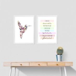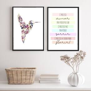 Kit 2 quadros é preciso amor beija-flor 24x18cm Moldura: madeira branca Informações do produto tire todas as suas dúvidas no descritivo abaixo: decoração para quarto, sala, cozinha, escritório, área gourmet e muito mais. Chega de paredes vazias medidas - cada peça tem 24x18cm a5 . Material do papel - papel fotográfico brilhante de altíssima resolução acabamento - todos os quadros são acompanhados de uma película de acetato para proteção da imagem. - os quadros são embalados de forma segura com plástico bolha com camada dupla de acordo com o tamanho dos quadros. Garantia - garantia de 3 meses. Meu quadro chegou. Como posso fixá-lo Você precisa apenas de um martelo e um prego, pois os quadros já vão acompanhados de penduradores. Esta é a forma mais indicada. Caso prefira, você pode utilizar uma fita dupla face neste caso, sugerimos de alta qualidade para evitar que descole e seu quadro caia . Como posso limpar meu quadro A limpeza é feita como um móvel comum da sua casa. Apenas um pano seco ou espanador são suficientes para tal