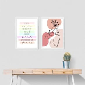Kit 2 quadros é preciso paz- mulher 45x34cm Moldura: madeira branca Informações do produto tire todas as suas dúvidas no descritivo abaixo: decoração para quarto, sala, cozinha, escritório, área gourmet e muito mais. Chega de paredes vazias. Medidas - cada peça tem 45x34cm a3 . Material do papel - papel fotográfico brilhante de altíssima resolução acabamento - todos os quadros são acompanhados de uma película de acetato para proteção da imagem. - os quadros são embalados de forma segura com plástico bolha com camada dupla de acordo com o tamanho dos quadros. Garantia - garantia de 3 meses. Meu quadro chegou. Como posso fixá-lo Você precisa apenas de um martelo e um prego, pois os quadros já vão acompanhados de penduradores. Esta é a forma mais indicada. Caso prefira, você pode utilizar uma fita dupla face neste caso, sugerimos de alta qualidade para evitar que descole e seu quadro caia . Como posso limpar meu quadro A limpeza é feita como um móvel comum da sua casa. Apenas um pano seco ou espanador são suficientes para tal