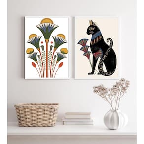 Kit 2 quadros egípcios gato bastet e flor de lotus 45x34cm Moldura: madeira branca Informações do produto tire todas as suas dúvidas no descritivo abaixo: decoração para quarto, sala, cozinha, escritório, área gourmet e muito mais. Chega de paredes vazias. Medidas - cada peça tem 45x34cm a3 . Material do papel - papel fotográfico brilhante de altíssima resolução acabamento - todos os quadros são acompanhados de uma película de acetato para proteção da imagem. - os quadros são embalados de forma segura com plástico bolha com camada dupla de acordo com o tamanho dos quadros. Garantia - garantia de 3 meses. Meu quadro chegou. Como posso fixá-lo Você precisa apenas de um martelo e um prego, pois os quadros já vão acompanhados de penduradores. Esta é a forma mais indicada. Caso prefira, você pode utilizar uma fita dupla face neste caso, sugerimos de alta qualidade para evitar que descole e seu quadro caia . Como posso limpar meu quadro A limpeza é feita como um móvel comum da sua casa. Apenas um pano seco ou espanador são suficientes para tal Ean: 7892677616942