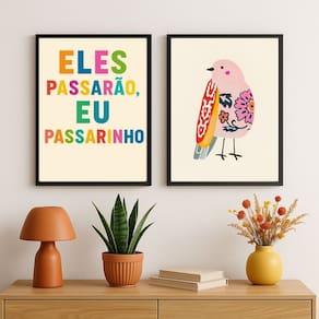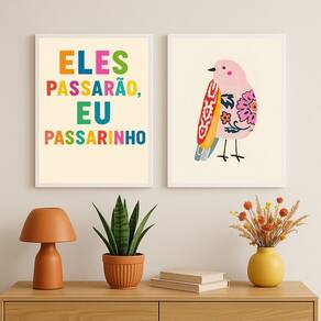 Kit 2 Quadros Eles Passarão Eu Passarinho 24x18cm - com vidro - Cor: Moldura branca