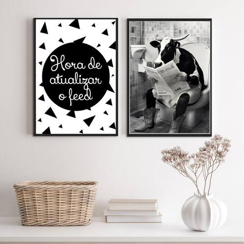 Kit 2 quadros engraçados banheiro - vaca 24x18cm - com vidro Moldura: madeira preta Informações do produto tire todas as suas dúvidas no descritivo abaixo: decoração para quarto, sala, cozinha, escritório, área gourmet e muito mais. Chega de paredes vazias medidas - cada peça tem 24x18cm a5 . Material do papel - papel fotográfico brilhante de altíssima resolução acabamento - todos os quadros são acompanhados de vidro para proteção da imagem. - moldura em madeira maciça na cor preta ou branca conforme produto escolhido e pendurador . - os quadros são embalados de forma segura com plástico bolha com camada dupla de acordo com o tamanho dos quadros. - de 3 meses. Meu quadro chegou. Como posso fixá-lo Você precisa apenas de um martelo e um prego, pois os quadros já vão acompanhados de penduradores. Esta é a forma mais indicada. Como posso limpar meu quadro A limpeza é feita como um móvel comum da sua casa. Apenas um pano seco ou espanador são suficientes para tal Marca: Não Informado Ean: 7897853523649