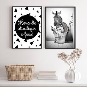Kit 2 quadros engraçados banheiro - zebra 24x18cm Moldura: madeira branca Informações do produto tire todas as suas dúvidas no descritivo abaixo: decoração para quarto, sala, cozinha, escritório, área gourmet e muito mais. Chega de paredes vazias medidas - cada peça tem 24x18cm a5 . Material do papel - papel fotográfico brilhante de altíssima resolução acabamento - todos os quadros são acompanhados de uma película de acetato para proteção da imagem. - os quadros são embalados de forma segura com plástico bolha com camada dupla de acordo com o tamanho dos quadros. Garantia - garantia de 3 meses. Meu quadro chegou. Como posso fixá-lo Você precisa apenas de um martelo e um prego, pois os quadros já vão acompanhados de penduradores. Esta é a forma mais indicada. Caso prefira, você pode utilizar uma fita dupla face neste caso, sugerimos de alta qualidade para evitar que descole e seu quadro caia . Como posso limpar meu quadro A limpeza é feita como um móvel comum da sua casa. Apenas um pano seco ou espanador são suficientes para tal