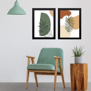 Kit 2 quadros estilo boho folhas verdes 24x18cm - com vidro Moldura: madeira preta Informações do produto tire todas as suas dúvidas no descritivo abaixo: decoração para quarto, sala, cozinha, escritório, área gourmet e muito mais. Chega de paredes vazias medidas - cada peça tem 24x18cm a5 . Material do papel - papel fotográfico brilhante de altíssima resolução acabamento - todos os quadros são acompanhados de vidro para proteção da imagem. - moldura em madeira maciça na cor preta ou branca conforme produto escolhido e pendurador . - os quadros são embalados de forma segura com plástico bolha com camada dupla de acordo com o tamanho dos quadros. Garantia - garantia de 3 meses. Meu quadro chegou. Como posso fixá-lo Você precisa apenas de um martelo e um prego, pois os quadros já vão acompanhados de penduradores. Esta é a forma mais indicada. Como posso limpar meu quadro A limpeza é feita como um móvel comum da sua casa. Apenas um pano seco ou espanador são suficientes para tal