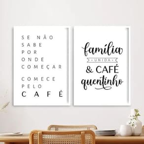 Kit 2 quadros família unida e café 24x18cm Cor: moldura branca Informações do produto tire todas as suas dúvidas no descritivo abaixo: decoração para quarto, sala, cozinha, escritório, área gourmet e muito mais. Chega de paredes vazias medidas - cada peça tem 24x18cm a5 . Material do papel - papel fotográfico brilhante de altíssima resolução acabamento - todos os quadros são acompanhados de uma película de acetato para proteção da imagem. - os quadros são embalados de forma segura com plástico bolha com camada dupla de acordo com o tamanho dos quadros. Garantia - garantia de 3 meses. Meu quadro chegou. Como posso fixá-lo Você precisa apenas de um martelo e um prego, pois os quadros já vão acompanhados de penduradores. Esta é a forma mais indicada. Caso prefira, você pode utilizar uma fita dupla face neste caso, sugerimos de alta qualidade para evitar que descole e seu quadro caia . Como posso limpar meu quadro A limpeza é feita como um móvel comum da sua casa. Apenas um pano seco ou espanador são suficientes para tal