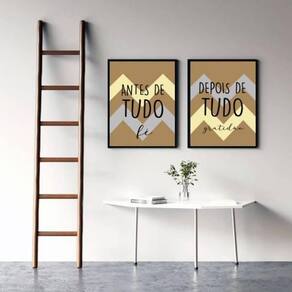 Kit 2 quadros fé e gratidão - chevron azul 45x34cm - com vidro Moldura: madeira preta Informações do produto tire todas as suas dúvidas no descritivo abaixo: decoração para quarto, sala, cozinha, escritório, área gourmet e muito mais. Chega de paredes vazias medidas - cada peça tem 45x34cm a3 . Material do papel - papel fotográfico brilhante de altíssima resolução acabamento - todos os quadros são acompanhados de vidro para proteção da imagem. - moldura em madeira maciça na cor preta e pendurador . - os quadros são embalados de forma segura com plástico bolha com camada dupla de acordo com o tamanho dos quadros. - de 3 meses. Meu quadro chegou. Como posso fixá-lo Você precisa apenas de um martelo e um prego, pois os quadros já vão acompanhados de penduradores. Esta é a forma mais indicada. Como posso limpar meu quadro A limpeza é feita como um móvel comum da sua casa. Apenas um pano seco ou espanador são suficientes para tal