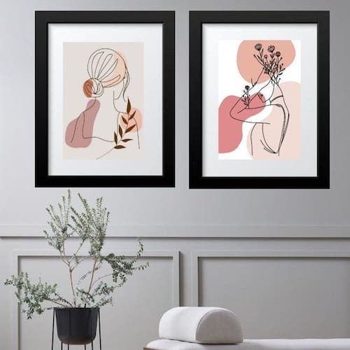 Kit 2 quadros femininos mulheres - 60x48cm Moldura: madeira branca Informações do produto tire todas as suas dúvidas no descritivo abaixo: decoração para quarto, sala, cozinha, escritório, área gourmet e muito mais. Chega de paredes vazias medidas - cada peça tem 60x48cm . Material do papel - papel fotográfico brilhante de altíssima resolução acabamento - todos os quadros são acompanhados de vidro para proteção da imagem. - moldura em madeira maciça na cor preta ou branca conforme produto escolhido e pendurador. - paspatur branco com 7cm de largura - os quadros são embalados de forma segura com plástico bolha com camada dupla de acordo com o tamanho dos quadros. Garantia - garantia de 3 meses. Meu quadro chegou. Como posso fixá-lo Você precisa apenas de um martelo e um prego, pois os quadros já vão acompanhados de penduradores. Esta é a forma mais indicada. Como posso limpar meu quadro A limpeza é feita como um móvel comum da sua casa. Apenas um pano seco ou espanador são suficientes para tal