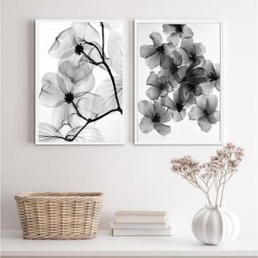 O Kit 2 Quadros Para Sala Florais Transparentes é perfeito para decorar diversos ambientes, como quarto, sala, cozinha, escritório, área gourmet e muito mais. Chega de paredes vazias! Cada peça possui as medidas de 45x34cm A3 , ideal para dar um toque especial à sua decoração.