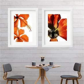 Kit 2 Quadros Flores Laranjas - 60X48Cm