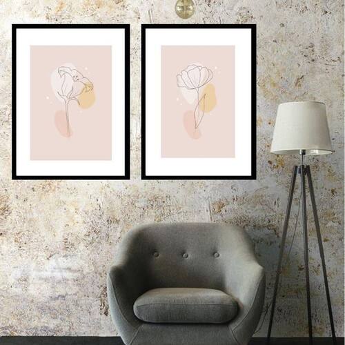Kit 2 quadros flores minimalistas rosadas - 60x48cm Moldura: madeira preta Informações do produto tire todas as suas dúvidas no descritivo abaixo: decoração para quarto, sala, cozinha, escritório, área gourmet e muito mais. Chega de paredes vazias medidas - cada peça tem 60x48cm . Material do papel - papel fotográfico brilhante de altíssima resolução acabamento - todos os quadros são acompanhados de vidro para proteção da imagem. - moldura em madeira maciça na cor preta ou branca conforme produto escolhido e pendurador. - paspatur branco com 7cm de largura - os quadros são embalados de forma segura com plástico bolha com camada dupla de acordo com o tamanho dos quadros. Garantia - garantia de 3 meses. Meu quadro chegou. Como posso fixá-lo Você precisa apenas de um martelo e um prego, pois os quadros já vão acompanhados de penduradores. Esta é a forma mais indicada. Como posso limpar meu quadro A limpeza é feita como um móvel comum da sua casa. Apenas um pano seco ou espanador são suficientes para tal