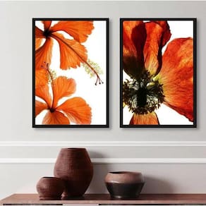 Kit 2 quadros flores modernas alaranjadas 33x24cm - com vidro Moldura: madeira branca Informações do produto tire todas as suas dúvidas no descritivo abaixo: decoração para quarto, sala, cozinha, escritório, área gourmet e muito mais. Chega de paredes vazias medidas - cada peça tem 33x24cm a4 . Material do papel - papel fotográfico brilhante de altíssima resolução acabamento - todos os quadros são acompanhados de vidro para proteção da imagem. - moldura em madeira maciça na cor preta ou branca conforme produto escolhido e pendurador . - os quadros são embalados de forma segura com plástico bolha com camada dupla de acordo com o tamanho dos quadros. Garantia - garantia de 3 meses. Meu quadro chegou. Como posso fixá-lo Você precisa apenas de um martelo e um prego, pois os quadros já vão acompanhados de penduradores. Esta é a forma mais indicada. Como posso limpar meu quadro A limpeza é feita como um móvel comum da sua casa. Apenas um pano seco ou espanador são suficientes para tal Ean: 7899873127685