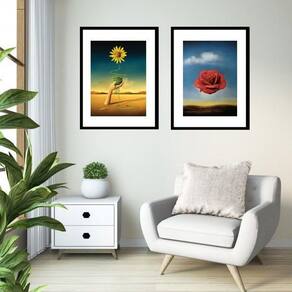 Kit 2 quadros flores salvador dalí - 60x48cm Moldura: madeira preta Informações do produto tire todas as suas dúvidas no descritivo abaixo: decoração para quarto, sala, cozinha, escritório, área gourmet e muito mais. Chega de paredes vazias medidas - cada peça tem 60x48cm . Material do papel - papel fotográfico brilhante de altíssima resolução acabamento - todos os quadros são acompanhados de vidro para proteção da imagem. - moldura em madeira maciça na cor preta ou branca conforme produto escolhido e pendurador. - paspatur branco com 7cm de largura - os quadros são embalados de forma segura com plástico bolha com camada dupla de acordo com o tamanho dos quadros. Garantia - garantia de 3 meses. Meu quadro chegou. Como posso fixá-lo Você precisa apenas de um martelo e um prego, pois os quadros já vão acompanhados de penduradores. Esta é a forma mais indicada. Como posso limpar meu quadro A limpeza é feita como um móvel comum da sua casa. Apenas um pano seco ou espanador são suficientes para tal Ean: 7896903913799