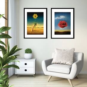 Kit 2 Quadros Flores Salvador Dalí - 60x48cm - Moldura: Madeira branca