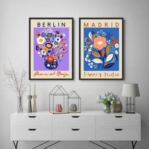 Kit 2 quadros flower market - madrid e berlin 33x24cm Moldura: madeira branca Informações do produto tire todas as suas dúvidas no descritivo abaixo: decoração para quarto, sala, cozinha, escritório, área gourmet e muito mais. Chega de paredes vazias medidas - cada peça tem 33x24cm a4 . Material do papel - papel fotográfico brilhante de altíssima resolução acabamento - todos os quadros são acompanhados de uma película de acetato para proteção da imagem. - os quadros são embalados de forma segura com plástico bolha com camada dupla de acordo com o tamanho dos quadros. Garantia - garantia de 3 meses. Meu quadro chegou. Como posso fixá-lo Você precisa apenas de um martelo e um prego, pois os quadros já vão acompanhados de penduradores. Esta é a forma mais indicada. Caso prefira, você pode utilizar uma fita dupla face neste caso, sugerimos de alta qualidade para evitar que descole e seu quadro caia . Como posso limpar meu quadro A limpeza é feita como um móvel comum da sua casa. Apenas um pano seco ou espanador são suficientes para tal