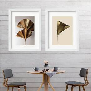 Kit 2 quadros folhas bronze - 60x48cm Moldura: madeira branca Informações do produto tire todas as suas dúvidas no descritivo abaixo: decoração para quarto, sala, cozinha, escritório, área gourmet e muito mais. Chega de paredes vazias medidas - cada peça tem 60x48cm . Material do papel - papel fotográfico brilhante de altíssima resolução acabamento - todos os quadros são acompanhados de vidro para proteção da imagem. - moldura em madeira maciça na cor branca e pendurador. - paspatur branco com 7cm de largura - os quadros são embalados de forma segura com plástico bolha com camada dupla de acordo com o tamanho dos quadros. Garantia - garantia de 3 meses. Meu quadro chegou. Como posso fixá-lo Você precisa apenas de um martelo e um prego, pois os quadros já vão acompanhados de penduradores. Esta é a forma mais indicada. Como posso limpar meu quadro A limpeza é feita como um móvel comum da sua casa. Apenas um pano seco ou espanador são suficientes para tal Cor: moldura branca Ean: 7891512397824