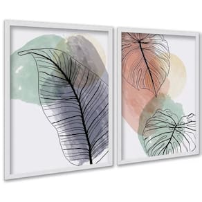 Kit 2 Quadros Folhas Costela Adão Aquarela 45X34Cm