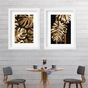 Kit 2 quadros folhas preto dourado - 60x48cm Moldura: madeira branca Informações do produto tire todas as suas dúvidas no descritivo abaixo: decoração para quarto, sala, cozinha, escritório, área gourmet e muito mais. Chega de paredes vazias medidas - cada peça tem 60x48cm . Material do papel - papel fotográfico brilhante de altíssima resolução acabamento - todos os quadros são acompanhados de vidro para proteção da imagem. - moldura em madeira maciça na cor preta ou branca conforme produto escolhido e pendurador. - paspatur branco com 7cm de largura - os quadros são embalados de forma segura com plástico bolha com camada dupla de acordo com o tamanho dos quadros. - de 3 meses. Meu quadro chegou. Como posso fixá-lo Você precisa apenas de um martelo e um prego, pois os quadros já vão acompanhados de penduradores. Esta é a forma mais indicada. Como posso limpar meu quadro A limpeza é feita como um móvel comum da sua casa. Apenas um pano seco ou espanador são suficientes para tal Marca: Não Informado Ean: 7898459378268