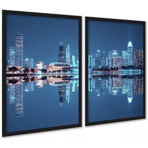 Kit 2 quadros foto cidade - luzes reflexo 45x34cm Cor: moldura branca Informações do produto tire todas as suas dúvidas no descritivo abaixo: decoração para quarto, sala, cozinha, escritório, área gourmet e muito mais. Chega de paredes vazias. Medidas - cada peça tem 45x34cm a3 . Material do papel - papel fotográfico brilhante de altíssima resolução acabamento - todos os quadros são acompanhados de uma película de acetato para proteção da imagem. - os quadros são embalados de forma segura com plástico bolha com camada dupla de acordo com o tamanho dos quadros. - de 3 meses. Meu quadro chegou. Como posso fixá-lo Você precisa apenas de um martelo e um prego, pois os quadros já vão acompanhados de penduradores. Esta é a forma mais indicada. Caso prefira, você pode utilizar uma fita dupla face neste caso, sugerimos de alta qualidade para evitar que descole e seu quadro caia . Como posso limpar meu quadro A limpeza é feita como um móvel comum da sua casa. Apenas um pano seco ou espanador são suficientes para tal
