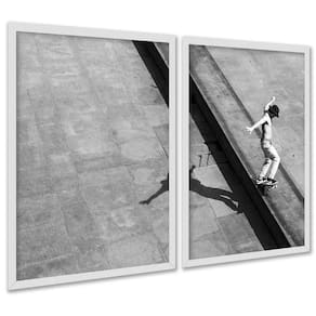 Kit 2 Quadros Foto Skatista Preto E Branco 33X24Cm