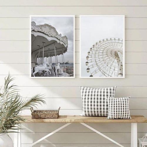 Kit 2 quadros fotografias brancas carrossel e roda gigante 45x34cm Moldura: madeira branca Informações do produto tire todas as suas dúvidas no descritivo abaixo: decoração para quarto, sala, cozinha, escritório, área gourmet e muito mais. Chega de paredes vazias. Medidas - cada peça tem 45x34cm a3 . Material do papel - papel fotográfico brilhante de altíssima resolução acabamento - todos os quadros são acompanhados de uma película de acetato para proteção da imagem. - os quadros são embalados de forma segura com plástico bolha com camada dupla de acordo com o tamanho dos quadros. Garantia - garantia de 3 meses. Meu quadro chegou. Como posso fixá-lo Você precisa apenas de um martelo e um prego, pois os quadros já vão acompanhados de penduradores. Esta é a forma mais indicada. Caso prefira, você pode utilizar uma fita dupla face neste caso, sugerimos de alta qualidade para evitar que descole e seu quadro caia . Como posso limpar meu quadro A limpeza é feita como um móvel comum da sua casa. Apenas um pano seco ou espanador são suficientes para tal Ean: 7891299610253