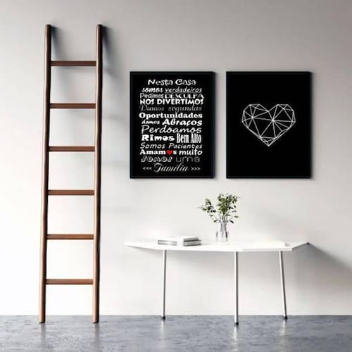 Kit 2 quadros frase família coração 45x34cm - com vidro Moldura: madeira preta Informações do produto tire todas as suas dúvidas no descritivo abaixo: decoração para quarto, sala, cozinha, escritório, área gourmet e muito mais. Chega de paredes vazias medidas - cada peça tem 45x34cm a3 . Material do papel - papel fotográfico brilhante de altíssima resolução acabamento - todos os quadros são acompanhados de vidro para proteção da imagem. - moldura em madeira maciça na cor preta e pendurador . - os quadros são embalados de forma segura com plástico bolha com camada dupla de acordo com o tamanho dos quadros. - de 3 meses. Meu quadro chegou. Como posso fixá-lo Você precisa apenas de um martelo e um prego, pois os quadros já vão acompanhados de penduradores. Esta é a forma mais indicada. Como posso limpar meu quadro A limpeza é feita como um móvel comum da sua casa. Apenas um pano seco ou espanador são suficientes para tal Ean: 7895142185189