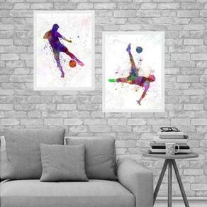 Kit 2 quadros futebol - aquarela 24x18cm - com vidro Moldura: madeira preta Informações do produto tire todas as suas dúvidas no descritivo abaixo: decoração para quarto, sala, cozinha, escritório, área gourmet e muito mais. Chega de paredes vazias medidas - cada peça tem 24x18cm a5 . Material do papel - papel fotográfico brilhante de altíssima resolução acabamento - todos os quadros são acompanhados de vidro para proteção da imagem. - moldura em madeira maciça na cor preta ou branca conforme produto escolhido e pendurador . - os quadros são embalados de forma segura com plástico bolha com camada dupla de acordo com o tamanho dos quadros. Garantia - garantia de 3 meses. Meu quadro chegou. Como posso fixá-lo Você precisa apenas de um martelo e um prego, pois os quadros já vão acompanhados de penduradores. Esta é a forma mais indicada. Como posso limpar meu quadro A limpeza é feita como um móvel comum da sua casa. Apenas um pano seco ou espanador são suficientes para tal