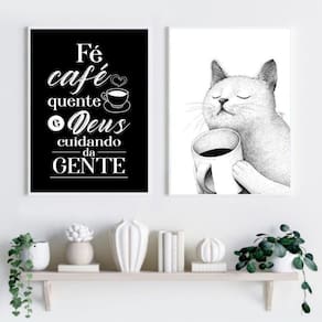 Kit 2 quadros gatinho café amor e fé 33x24cm Moldura: madeira preta Informações do produto tire todas as suas dúvidas no descritivo abaixo: decoração para quarto, sala, cozinha, escritório, área gourmet e muito mais. Chega de paredes vazias medidas - cada peça tem 33x24cm a4 . Material do papel - papel fotográfico brilhante de altíssima resolução acabamento - todos os quadros são acompanhados de uma película de acetato para proteção da imagem. - os quadros são embalados de forma segura com plástico bolha com camada dupla de acordo com o tamanho dos quadros. Garantia - garantia de 3 meses. Meu quadro chegou. Como posso fixá-lo Você precisa apenas de um martelo e um prego, pois os quadros já vão acompanhados de penduradores. Esta é a forma mais indicada. Caso prefira, você pode utilizar uma fita dupla face neste caso, sugerimos de alta qualidade para evitar que descole e seu quadro caia . Como posso limpar meu quadro A limpeza é feita como um móvel comum da sua casa. Apenas um pano seco ou espanador são suficientes para tal