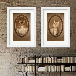 Kit 2 quadros gatinhos vintage - 60x48cm Moldura: madeira branca Informações do produto tire todas as suas dúvidas no descritivo abaixo: decoração para quarto, sala, cozinha, escritório, área gourmet e muito mais. Chega de paredes vazias medidas - cada peça tem 60x48cm . Material do papel - papel fotográfico brilhante de altíssima resolução acabamento - todos os quadros são acompanhados de vidro para proteção da imagem. - moldura em madeira maciça na cor preta ou branca conforme produto escolhido e pendurador. - paspatur branco com 7cm de largura - os quadros são embalados de forma segura com plástico bolha com camada dupla de acordo com o tamanho dos quadros. Garantia - garantia de 3 meses. Meu quadro chegou. Como posso fixá-lo Você precisa apenas de um martelo e um prego, pois os quadros já vão acompanhados de penduradores. Esta é a forma mais indicada. Como posso limpar meu quadro A limpeza é feita como um móvel comum da sua casa. Apenas um pano seco ou espanador são suficientes para tal