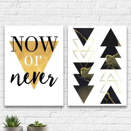Kit 2 Quadros Geométricos Now Or Never 33X24Cm Moldura: madeira branca Informações do produto: decoração para quarto, sala, cozinha, escritório, área gourmet e muito mais. Chega de paredes vazias Medidas - cada peça tem 33x24cm a4 . Material do papel - papel fotográfico brilhante de altíssima resolução acabamento - todos os quadros são acompanhados de uma película de acetato para proteção da imagem. - moldura em madeira maciça na cor branca e pendurador móvel que pode ser retirado facilmente caso deseje fixar com fita dupla face. - os quadros são embalados de forma segura com plástico bolha com camada dupla de acordo com o tamanho dos quadros. - de 3 meses Meu quadro chegou. Como posso fixá-lo Você precisa apenas de um martelo e um prego, pois os quadros já vão acompanhados de penduradores. Esta é a forma mais indicada. Caso prefira, você pode utilizar uma fita dupla face neste caso, sugerimos de alta qualidade para evitar que descole e seu quadro caia . Como posso limpar meu quadro A limpeza é feita como um móvel comum da sua casa. Apenas um pano seco ou espanador são suficientes para tal Marca: Não Informado