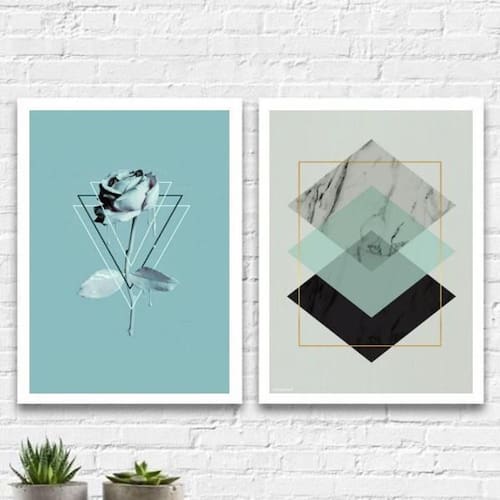 Kit 2 quadros geométricos rosa tiffany 24x18cm - com vidro Moldura: madeira preta Informações do produto tire todas as suas dúvidas no descritivo abaixo: decoração para quarto, sala, cozinha, escritório, área gourmet e muito mais. Chega de paredes vazias medidas - cada peça tem 24x18cm a5 . Material do papel - papel fotográfico brilhante de altíssima resolução acabamento - todos os quadros são acompanhados de vidro para proteção da imagem. - moldura em madeira maciça na cor preta e pendurador . - os quadros são embalados de forma segura com plástico bolha com camada dupla de acordo com o tamanho dos quadros. - de 3 meses. Meu quadro chegou. Como posso fixá-lo Você precisa apenas de um martelo e um prego, pois os quadros já vão acompanhados de penduradores. Esta é a forma mais indicada. Como posso limpar meu quadro A limpeza é feita como um móvel comum da sua casa. Apenas um pano seco ou espanador são suficientes para tal Ean: 7895142238700