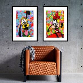 Kit 2 quadros grafite pluto pateta - 60x48cm Moldura: madeira preta Informações do produto tire todas as suas dúvidas no descritivo abaixo: decoração para quarto, sala, cozinha, escritório, área gourmet e muito mais. Chega de paredes vazias medidas - cada peça tem 60x48cm . Material do papel - papel fotográfico brilhante de altíssima resolução acabamento - todos os quadros são acompanhados de vidro para proteção da imagem. - moldura em madeira maciça na cor preta ou branca conforme produto escolhido e pendurador. - paspatur branco com 7cm de largura - os quadros são embalados de forma segura com plástico bolha com camada dupla de acordo com o tamanho dos quadros. Garantia - garantia de 3 meses. Meu quadro chegou. Como posso fixá-lo Você precisa apenas de um martelo e um prego, pois os quadros já vão acompanhados de penduradores. Esta é a forma mais indicada. Como posso limpar meu quadro A limpeza é feita como um móvel comum da sua casa. Apenas um pano seco ou espanador são suficientes para tal