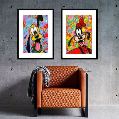 Kit 2 quadros grafite pluto pateta - 60x48cm Moldura: madeira preta Informações do produto tire todas as suas dúvidas no descritivo abaixo: decoração para quarto, sala, cozinha, escritório, área gourmet e muito mais. Chega de paredes vazias medidas - cada peça tem 60x48cm . Material do papel - papel fotográfico brilhante de altíssima resolução acabamento - todos os quadros são acompanhados de vidro para proteção da imagem. - moldura em madeira maciça na cor preta ou branca conforme produto escolhido e pendurador. - paspatur branco com 7cm de largura - os quadros são embalados de forma segura com plástico bolha com camada dupla de acordo com o tamanho dos quadros. - de 3 meses. Meu quadro chegou. Como posso fixá-lo Você precisa apenas de um martelo e um prego, pois os quadros já vão acompanhados de penduradores. Esta é a forma mais indicada. Como posso limpar meu quadro A limpeza é feita como um móvel comum da sua casa. Apenas um pano seco ou espanador são suficientes para tal Marca: Não Informado Ean: 7892467735921