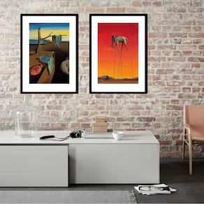 Kit 2 quadros grandes artes dalí - 60x48cm Moldura: madeira branca Informações do produto tire todas as suas dúvidas no descritivo abaixo: decoração para quarto, sala, cozinha, escritório, área gourmet e muito mais. Chega de paredes vazias medidas - cada peça tem 60x48cm . Material do papel - papel fotográfico brilhante de altíssima resolução acabamento - todos os quadros são acompanhados de vidro para proteção da imagem. - moldura em madeira maciça na cor preta ou branca conforme produto escolhido e pendurador. - paspatur branco com 7cm de largura - os quadros são embalados de forma segura com plástico bolha com camada dupla de acordo com o tamanho dos quadros. Garantia - garantia de 3 meses. Meu quadro chegou. Como posso fixá-lo Você precisa apenas de um martelo e um prego, pois os quadros já vão acompanhados de penduradores. Esta é a forma mais indicada. Como posso limpar meu quadro A limpeza é feita como um móvel comum da sua casa. Apenas um pano seco ou espanador são suficientes para tal