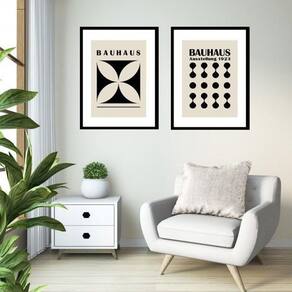 Kit 2 quadros grandes bauhaus preto - 60x48cm Moldura: madeira preta Informações do produto tire todas as suas dúvidas no descritivo abaixo: decoração para quarto, sala, cozinha, escritório, área gourmet e muito mais. Chega de paredes vazias medidas - cada peça tem 60x48cm . Material do papel - papel fotográfico brilhante de altíssima resolução acabamento - todos os quadros são acompanhados de vidro para proteção da imagem. - moldura em madeira maciça na cor preta ou branca conforme produto escolhido e pendurador. - paspatur branco com 7cm de largura - os quadros são embalados de forma segura com plástico bolha com camada dupla de acordo com o tamanho dos quadros. Garantia - garantia de 3 meses. Meu quadro chegou. Como posso fixá-lo Você precisa apenas de um martelo e um prego, pois os quadros já vão acompanhados de penduradores. Esta é a forma mais indicada. Como posso limpar meu quadro A limpeza é feita como um móvel comum da sua casa. Apenas um pano seco ou espanador são suficientes para tal