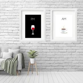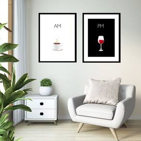 kit 2 Quadros Grandes Café e Vinho - 60x48cm - Moldura: Madeira preta
