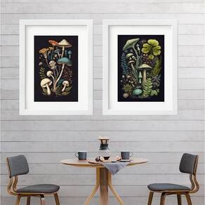 Kit 2 quadros grandes cogumelos - 60x48cm Moldura: madeira preta Informações do produto tire todas as suas dúvidas no descritivo abaixo: decoração para quarto, sala, cozinha, escritório, área gourmet e muito mais. Chega de paredes vazias medidas - cada peça tem 60x48cm . Material do papel - papel fotográfico brilhante de altíssima resolução acabamento - todos os quadros são acompanhados de vidro para proteção da imagem. - moldura em madeira maciça na cor preta ou branca conforme produto escolhido e pendurador. - paspatur branco com 7cm de largura - os quadros são embalados de forma segura com plástico bolha com camada dupla de acordo com o tamanho dos quadros. Garantia - garantia de 3 meses. Meu quadro chegou. Como posso fixá-lo Você precisa apenas de um martelo e um prego, pois os quadros já vão acompanhados de penduradores. Esta é a forma mais indicada. Como posso limpar meu quadro A limpeza é feita como um móvel comum da sua casa. Apenas um pano seco ou espanador são suficientes para tal