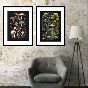 Kit 2 quadros grandes cogumelos - 60x48cm Moldura: madeira preta Informações do produto tire todas as suas dúvidas no descritivo abaixo: decoração para quarto, sala, cozinha, escritório, área gourmet e muito mais. Chega de paredes vazias medidas - cada peça tem 60x48cm . Material do papel - papel fotográfico brilhante de altíssima resolução acabamento - todos os quadros são acompanhados de vidro para proteção da imagem. - moldura em madeira maciça na cor preta ou branca conforme produto escolhido e pendurador. - paspatur branco com 7cm de largura - os quadros são embalados de forma segura com plástico bolha com camada dupla de acordo com o tamanho dos quadros. - de 3 meses. Meu quadro chegou. Como posso fixá-lo Você precisa apenas de um martelo e um prego, pois os quadros já vão acompanhados de penduradores. Esta é a forma mais indicada. Como posso limpar meu quadro A limpeza é feita como um móvel comum da sua casa. Apenas um pano seco ou espanador são suficientes para tal Marca: Não Informado Ean: 7893044107537