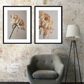 Kit 2 Quadros Grandes Crisântemos Bege - 60X48Cm