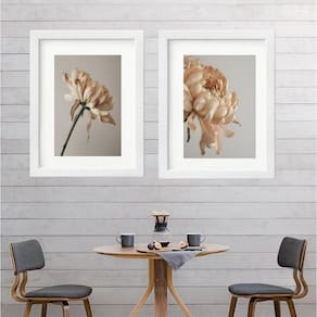 Kit 2 quadros grandes crisântemos bege - 60x48cm Moldura: madeira preta Informações do produto tire todas as suas dúvidas no descritivo abaixo: decoração para quarto, sala, cozinha, escritório, área gourmet e muito mais. Chega de paredes vazias medidas - cada peça tem 60x48cm . Material do papel - papel fotográfico brilhante de altíssima resolução acabamento - todos os quadros são acompanhados de vidro para proteção da imagem. - moldura em madeira maciça na cor preta ou branca conforme produto escolhido e pendurador. - paspatur branco com 7cm de largura - os quadros são embalados de forma segura com plástico bolha com camada dupla de acordo com o tamanho dos quadros. Garantia - garantia de 3 meses. Meu quadro chegou. Como posso fixá-lo Você precisa apenas de um martelo e um prego, pois os quadros já vão acompanhados de penduradores. Esta é a forma mais indicada. Como posso limpar meu quadro A limpeza é feita como um móvel comum da sua casa. Apenas um pano seco ou espanador são suficientes para tal