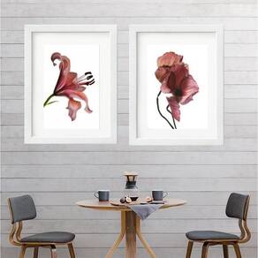 Kit 2 quadros grandes flores vinho - 60x48cm