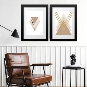 Kit 2 quadros grandes geométricos nude - 60x48cm