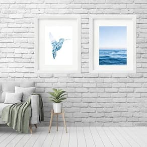 Kit 2 quadros grandes mar beija-flor - 60x48cm Moldura: madeira branca Informações do produto tire todas as suas dúvidas no descritivo abaixo: decoração para quarto, sala, cozinha, escritório, área gourmet e muito mais. Chega de paredes vazias medidas - cada peça tem 60x48cm . Material do papel - papel fotográfico brilhante de altíssima resolução acabamento - todos os quadros são acompanhados de vidro para proteção da imagem. - moldura em madeira maciça na cor preta ou branca conforme produto escolhido e pendurador. - paspatur branco com 7cm de largura - os quadros são embalados de forma segura com plástico bolha com camada dupla de acordo com o tamanho dos quadros. - de 3 meses. Meu quadro chegou. Como posso fixá-lo Você precisa apenas de um martelo e um prego, pois os quadros já vão acompanhados de penduradores. Esta é a forma mais indicada. Como posso limpar meu quadro A limpeza é feita como um móvel comum da sua casa. Apenas um pano seco ou espanador são suficientes para tal Ean: 7898816440348