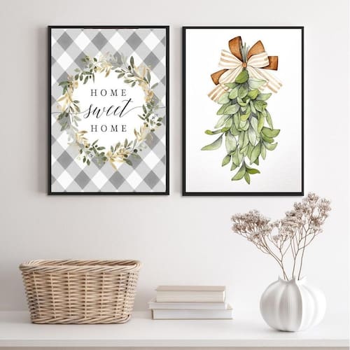 Kit 2 quadros home sweet home - plantinha 45x34cm Moldura: madeira branca Informações do produto tire todas as suas dúvidas no descritivo abaixo: decoração para quarto, sala, cozinha, escritório, área gourmet e muito mais. Chega de paredes vazias. Medidas - cada peça tem 45x34cm a3 . Material do papel - papel fotográfico brilhante de altíssima resolução acabamento - todos os quadros são acompanhados de uma película de acetato para proteção da imagem. - os quadros são embalados de forma segura com plástico bolha com camada dupla de acordo com o tamanho dos quadros. Garantia - garantia de 3 meses. Meu quadro chegou. Como posso fixá-lo Você precisa apenas de um martelo e um prego, pois os quadros já vão acompanhados de penduradores. Esta é a forma mais indicada. Caso prefira, você pode utilizar uma fita dupla face neste caso, sugerimos de alta qualidade para evitar que descole e seu quadro caia . Como posso limpar meu quadro A limpeza é feita como um móvel comum da sua casa. Apenas um pano seco ou espanador são suficientes para tal