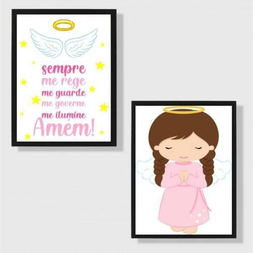 Kit 2 quadros infantis anjo da guarda rosa 33x24cm Moldura: madeira preta Informações do produto tire todas as suas dúvidas no descritivo abaixo: decoração para quarto, sala, cozinha, escritório, área gourmet e muito mais. Chega de paredes vazias medidas - cada peça tem 33x24cm a4 . Material do papel - papel fotográfico brilhante de altíssima resolução acabamento - todos os quadros são acompanhados de uma película de acetato para proteção da imagem. - os quadros são embalados de forma segura com plástico bolha com camada dupla de acordo com o tamanho dos quadros. - de 3 meses. Meu quadro chegou. Como posso fixá-lo Você precisa apenas de um martelo e um prego, pois os quadros já vão acompanhados de penduradores. Esta é a forma mais indicada. Caso prefira, você pode utilizar uma fita dupla face neste caso, sugerimos de alta qualidade para evitar que descole e seu quadro caia . Como posso limpar meu quadro A limpeza é feita como um móvel comum da sua casa. Apenas um pano seco ou espanador são suficientes para tal Ean: 7892090581193