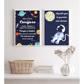Kit 2 Quadros Infantis Evangélicos Tema Espacial 24X18Cm