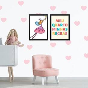 Kit 2 quadros infantis meu quarto minhas regras 45x34cm - com vidro Moldura: madeira preta Informações do produto tire todas as suas dúvidas no descritivo abaixo: decoração para quarto, sala, cozinha, escritório, área gourmet e muito mais. Chega de paredes vazias medidas - cada peça tem 45x34cm a3 . Material do papel - papel fotográfico brilhante de altíssima resolução acabamento - todos os quadros são acompanhados de vidro para proteção da imagem. - moldura em madeira maciça na cor preta ou branca conforme produto escolhido e pendurador . - os quadros são embalados de forma segura com plástico bolha com camada dupla de acordo com o tamanho dos quadros. Garantia - garantia de 3 meses. Meu quadro chegou. Como posso fixá-lo Você precisa apenas de um martelo e um prego, pois os quadros já vão acompanhados de penduradores. Esta é a forma mais indicada. Como posso limpar meu quadro A limpeza é feita como um móvel comum da sua casa. Apenas um pano seco ou espanador são suficientes para tal